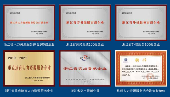 目前,與仁本公司結成戰(zhàn)略合作伙伴的企業(yè)有顧家家居、東華鏈條集團、春風控股、八佰伴、三花控股、中國旺旺、順豐速運、海螺集團、徽商銀行、三只松鼠、香飄飄集團、杭州師范大學等百家企業(yè),公司為浙江省中小企業(yè)人力資源輸送基地,榮獲浙江省突出貢獻企業(yè)獎,還先后被全國人力資源管理協(xié)會、浙江省、安徽省、杭州市、寧波市和宣城市等多家政府部門授予中國勞務派遣誠信單位、人才中介先進單位、和諧人事勞動關系先進單位等榮譽。