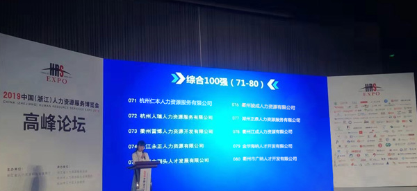 杭州仁本榮獲人力資源服務綜合百強企業