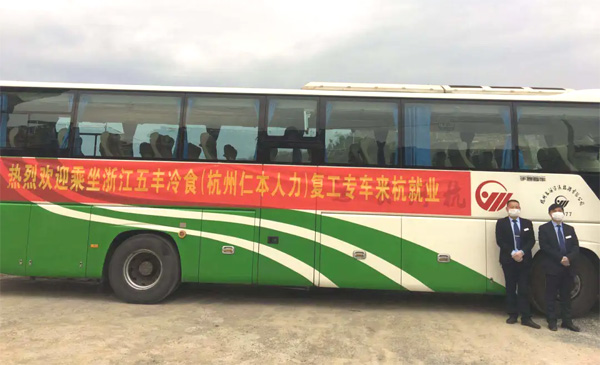 浙江五豐食品(杭州仁本人力)聯(lián)合復(fù)工專車
