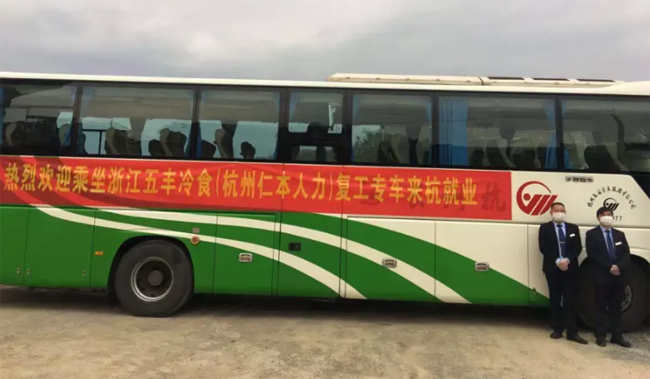 疫情初期,員工返崗復工難,企業招工用工難,杭州仁本通過與企業合作的方式,包車點對點的開通了多趟復工專車。短短時間內我們收集參與杭州政府開設的復工復產專列的報名復工人員信息239條,通過參與五豐食品和玫隆食品等企業的多趟復工專列,接回返杭復工人員超過500多人。