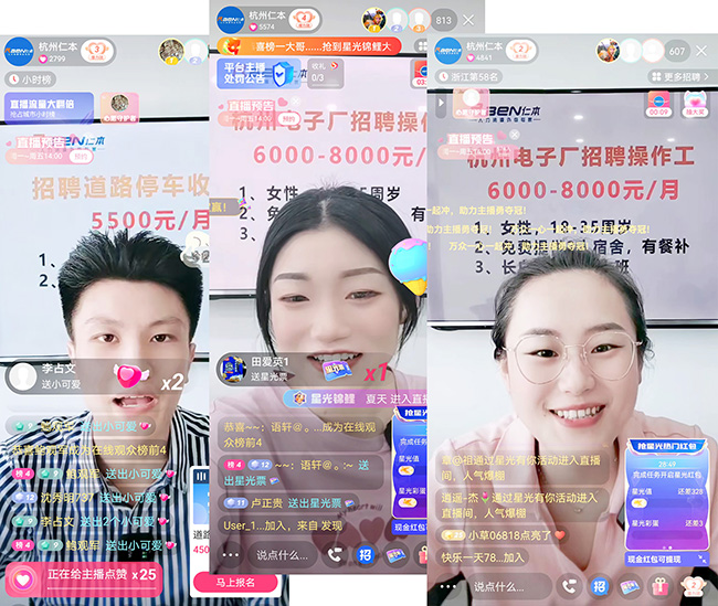 在杭州仁本快手直播間里,我們每天精選高薪優(yōu)質好工作,給大家詳細推薦!
