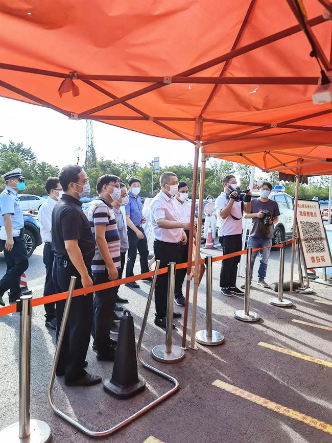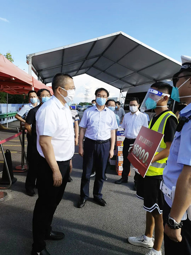 驕陽似火,熱浪襲人,連日來40多度的高溫炙烤著蕪湖大地,也考驗(yàn)著奮戰(zhàn)在防疫一線的仁本集團(tuán)蕪湖仁杰員工。8月6日下午,蕪湖市委副書記、市長寧波,蕪湖市弋江區(qū)區(qū)長汪敏等領(lǐng)導(dǎo)前往弋江區(qū)高速路口,看望慰問連日來一直堅(jiān)守一線的蕪湖仁杰防疫員工。
