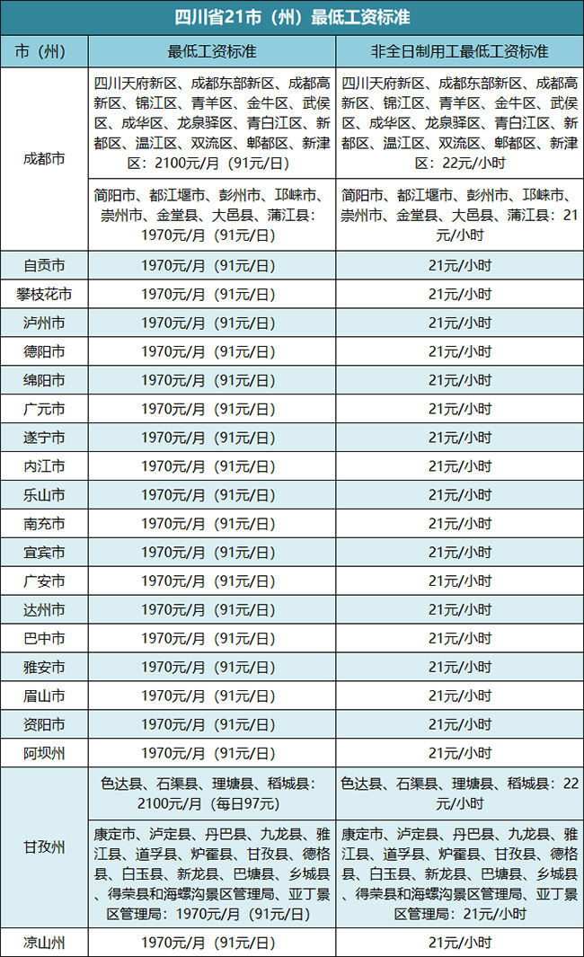《四川省人民政府關于調整全省最低工資標準的通知》,川府規〔2022〕1號,2022年3月25日。