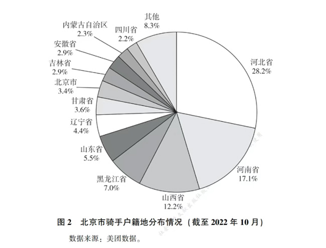 圖源:《北京社會(huì)發(fā)展報(bào)告(2022~2023)》過去40多年來,我國完成了從“鄉(xiāng)土中國”到“城鄉(xiāng)中國”的巨大跨越,形成全球規(guī)模最為龐大的人口大遷徙現(xiàn)象,大量流動(dòng)人口以“勞動(dòng)力紅利”撐起了城市的飛速發(fā)展。 在北上廣深的街頭,你能聽到騎手們天南海北的口音。只要付出汗水,就能拿到不亞于藍(lán)領(lǐng)工人的收入,但遺憾的是,很多人最終還是要回到老家養(yǎng)老。