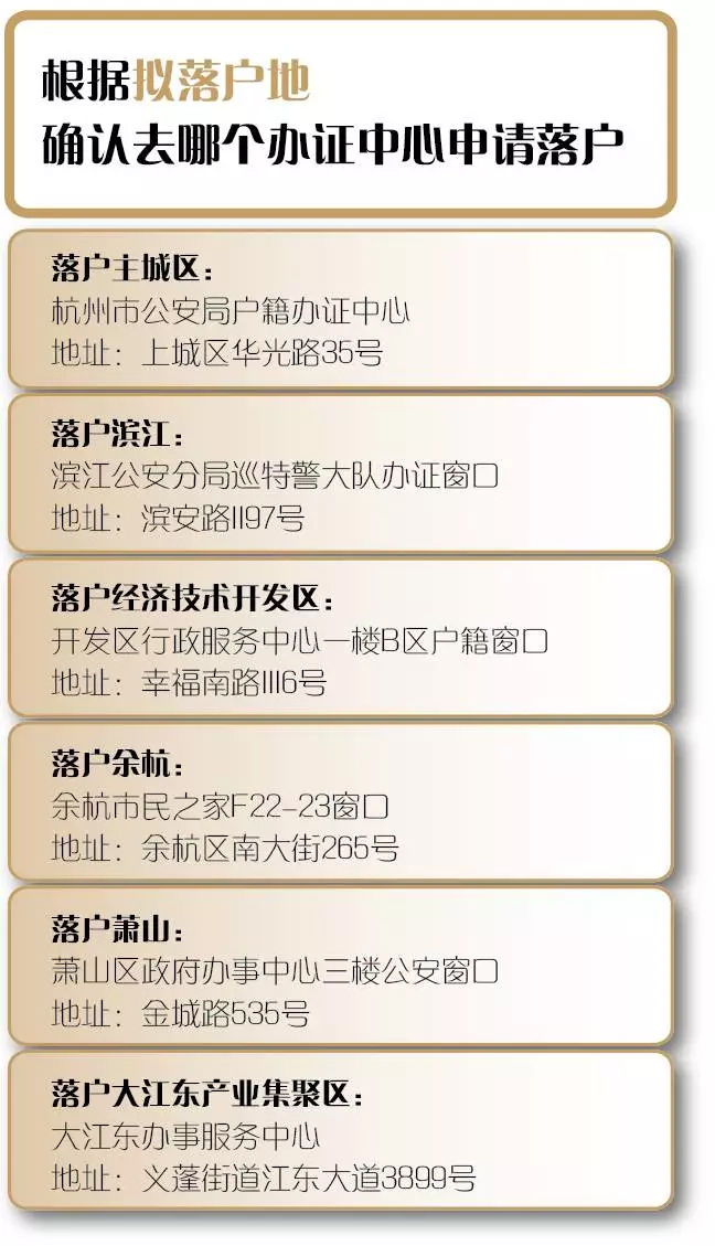 到哪里申請辦理高技能人才落戶? 申請落戶在杭州主城區(qū)的到杭州市公安局戶籍辦證中心(華光路35號)辦理,落戶在濱江區(qū)、經(jīng)濟開發(fā)區(qū)、余杭區(qū)、蕭山區(qū)、大江東產(chǎn)業(yè)集聚區(qū)的前往當(dāng)?shù)毓卜志?辦證中心)申請辦理。(具體地址請見下圖)