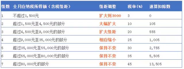 稅率和級(jí)距調(diào)整后,對(duì)于中低等收入的納稅人來說,影響比較大,減少了納稅金額,對(duì)高收入人群來說影響相對(duì)較小。 |