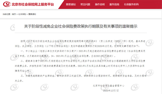 中小微企業注意了 2021年1月起社保費全額征收 重點提示:1、中小微企業注意了,社保免征和緩繳政策執行到2020年12月底,2021年1月起應繳納的社會保險將全額征收! 2、小編了解到,社保由稅務局征收后,各地社保的申報和繳納有所不同。目前北京、上海等地是當月申報次月繳納。河北、山西、青島、廈門等地是當月申報當月繳納。請各位注意申報和繳納日期,不要錯過申報和繳費哦。 另外,還有一些即將到期的優惠政策,老板和會計抓緊利用剩余時間,如果能享受到的話也能為企業省一大筆錢!