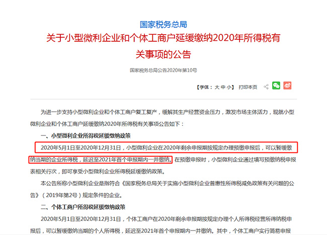 12月31日到期,明年不能享受 需要做稅籌的趕緊看! 增值稅優惠 … 1、自2019年2月1日至2020年12月31日,對企業集團內單位(含企業集團)之間的資金無償借貸行為,免征增值稅。 如果上述政策到期后,沒有相應的延期政策,在12月31日后,企業集團內單位之間無償借貸行為,應視同銷售,需按貸款服務繳納增值稅,適用6%的增值稅稅率,且取的專票的不允許抵扣。 2、自2018年9月1日至2020年12月31日,對金融機構向小型企業、微型企業和個體工商戶發放小額貸款取得的利息收入,免征增值稅。 3、疫情期間免征增值稅優惠政策截止到12月31日。 企業所得稅優惠 … 1、繳2020年所得稅小型微利企業和個體工商戶在2020年辦理第三、四季度企業所得稅預繳申報時,可以只申報不繳稅,應繳稅款延緩至2021年1月,同2020年第四季度的稅款一并繳納。 也就是說,符合條件的企業2020年三、四季度可以不預扣預繳所得稅,到2021年再扣。