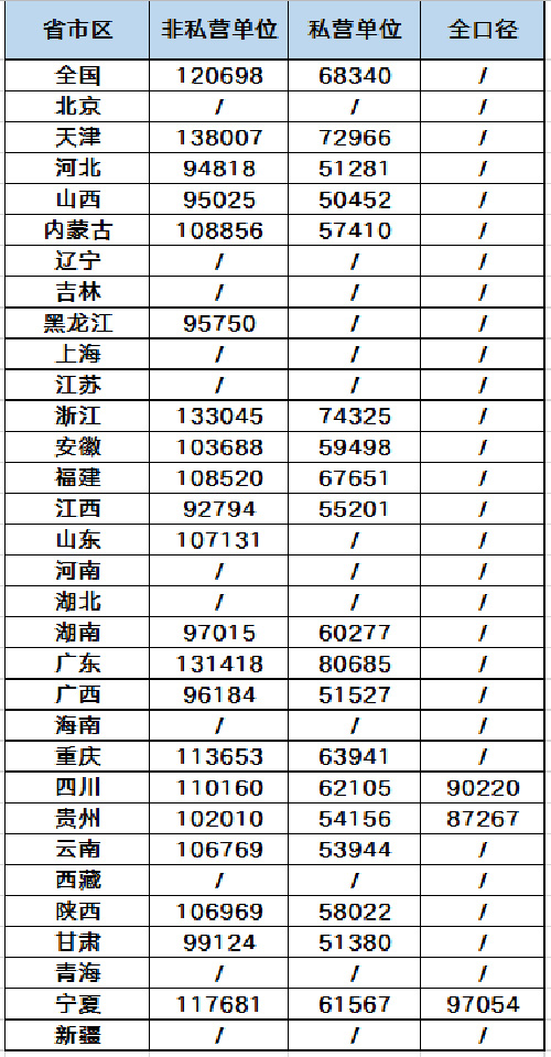 2023年全國各省市社會平均工資匯總表 目前,已經有部分省市公布了2023年城鎮非私營單位、城鎮私營單位就業人員年平均工資,少數省份公布了全口徑城鎮單位就業人員平均工資(2024年社保基數),小智為您整理全國各省的數據如下: