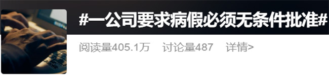 近日,一公司要求病假必須無條件批準(zhǔn),相關(guān)話題引發(fā)網(wǎng)友熱議。