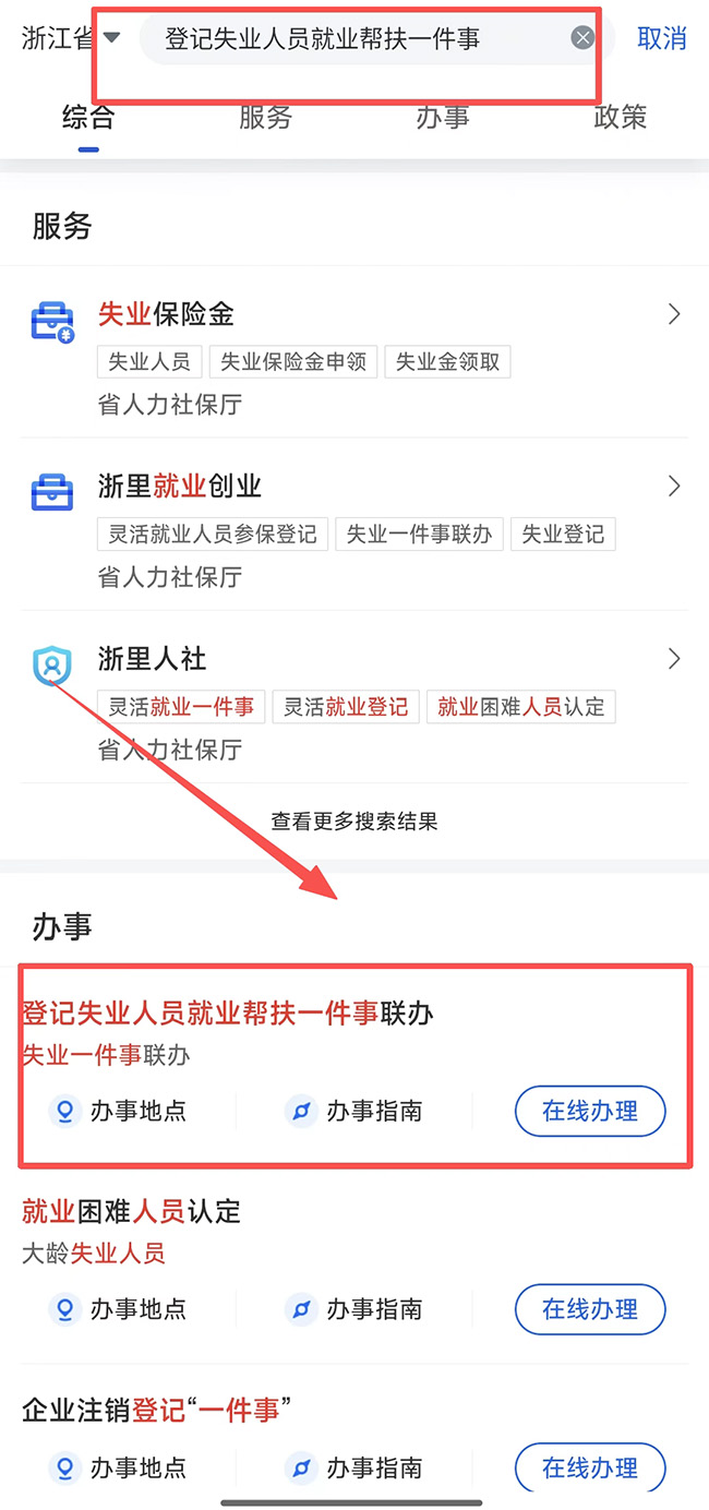 失業登記范圍 年滿16周歲(含)至依法享受基本養老保險待遇,有勞動能力、有就業要求并處于無業狀態的以下人員,可進行失業登記: 1、年滿16周歲,未繼續升學的各類學校畢業生 2、因各種原因與用人單位解除或終止勞動(聘用)關系的 3、個體工商戶、私營企業或民辦非企業業主停止經營的 4、承包土地被征用,符合當地規定條件的 5、軍人退出現役且未納入國家統一安置的 6、退出靈活就業,或從事有一定收入的勞動,但月收入低于當地最低工資標準的 7、刑滿釋放、假釋、監外執行的 8、法律、法規規定的其他符合失業登記的人員 失業登記辦理地點 由本人向戶籍地、常住地、就業地或參保地的街道(鄉鎮)或社區(村)公共服務平臺窗口申請辦理,或通過浙江政務服務網、“浙里辦”APP線上申請辦理。 1、常住地:是指失業人員持有的《浙江省居住證》上記載的現居住地 2、就業地:是指失業人員失業前就業登記地或勞動用工備案地 3、參保地:指失業人員失業前參加社會保險的所在地 浙里辦辦理 “浙里辦”APP、浙江政務服務網、支付寶“浙里辦”小程序,搜索“登記失業人員就業幫扶一件事”,就能一鍵辦理失業登記、失業保險金申領等事項。